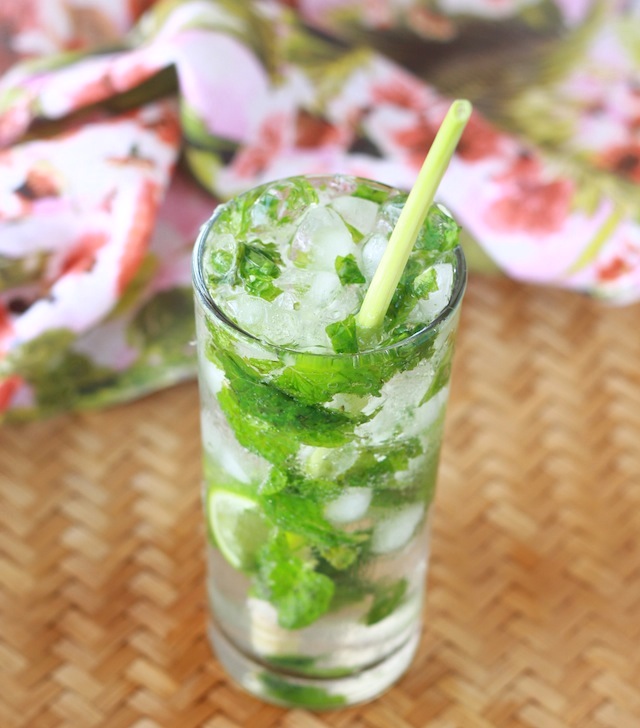 If you’re having friends over for dinner – who have been staring curiously at the lemongrass stalks in the shot glasses – serve them each a glass with all the mojito steps done, but the rum and soda water. Then have them pour in the rum as you walk around topping each glass with soda water. Ask everyone to mix their drinks with the lemongrass stalks, and a cheers to an early summer!