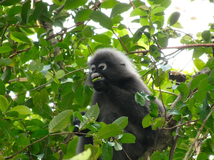 A Dusky Leaf Monkey munching on leaves at Tropical Spice Garden
