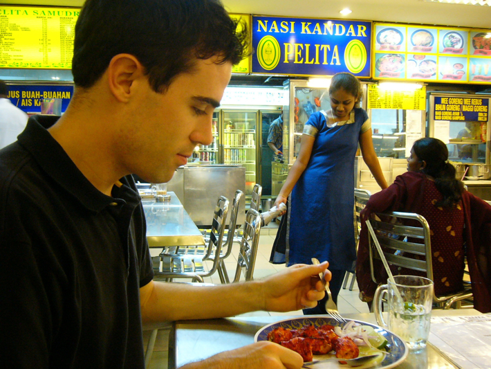 Eating tandoori chicken in Penang Malaysia